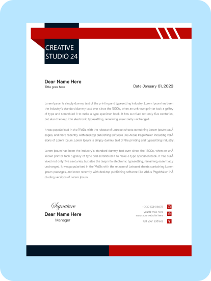 From elegant and sophisticated to bold and contemporary, we tailor each design to align perfectly with your brand identity. Whether you’re sending out official documents, letters, or proposals, our letterhead designs will leave a lasting impression on recipients, reinforcing your brand image with every interaction.