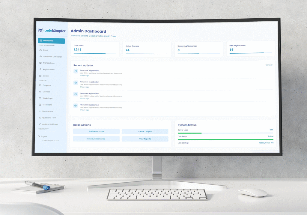 Codekampfer set out to build a comprehensive online learning platform for aspiring coders, students, and developers. Their goal was to create an interactive, scalable, and modern ecosystem that offered real-world coding practice, structured learning paths, and automated certification all within a single integrated platform.